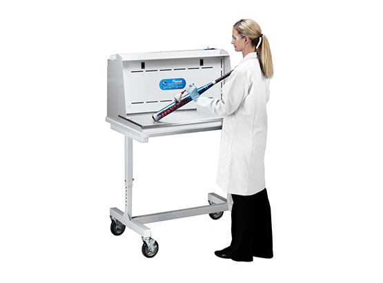 Der mobile Feinstaub-Arbeitsplatz schützt den Anwender vor Feinstäuben bei der Spurensicherung mit Fingerabdruckpulvern.