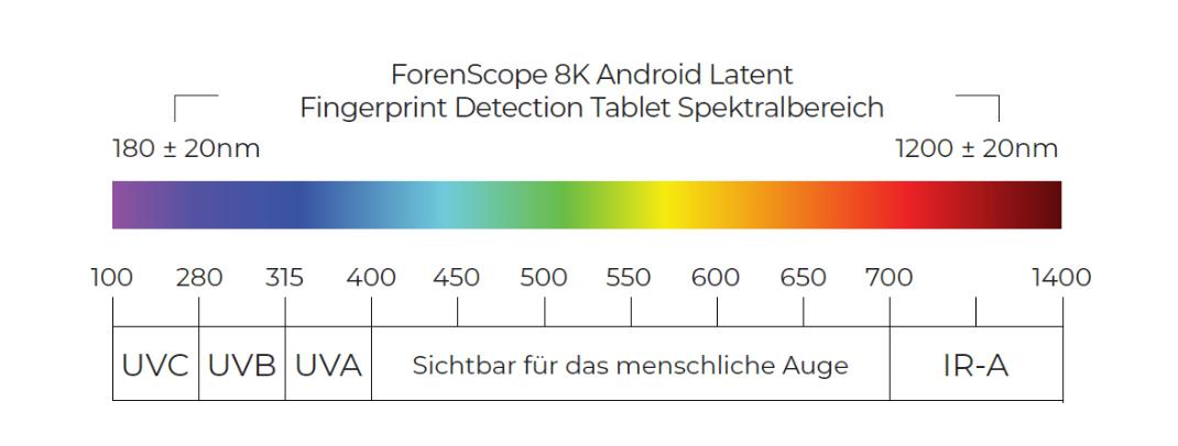 Entdecken Sie das ForenScope 8K Latent Fingerprint Detection Tablet – die innovative, staub- und chemikalienfreie Lösung für die berührungslose Erfassung latenter Fingerabdrücke. Mit einer hochauflösenden 45,9 MP Multispektral-8K-Kamera (UVC–UVB–UVA / VIS / IR) visualisiert das System selbst feinste Details auf matten und glänzenden Oberflächen, ohne das Spurenträgerobjekt zu beschädigen. So erhalten Ermittlerinnen und Ermittler schnell, sicher und in höchster Qualität verwertbare Spuren.