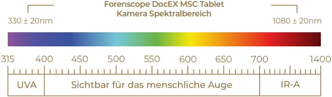 4. Spektralbereich der Kamera von 330nm ± 20nm bis 1080 nm ± 20nm