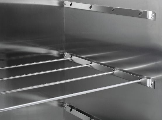 Durch die variablen und herausnehmbaren Edelstahl-Befestigungen und Ablageflächen wie z.B. Gitterböden, Haltestangen, Befestigungsklammern, Halterungen für Patronenhülsen und Langwaffen ist eine Bedampfung jeder Art von Spurenträger optimal durchführbar. Der Bedampfungsschrank ist sowohl als Tisch- als auch als Standmodell erhältlich.